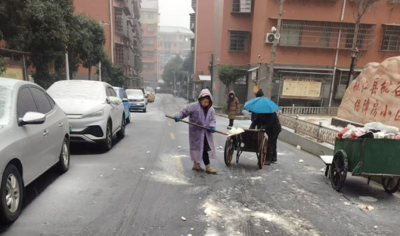 沾溪镇党员干部清扫积雪 沾溪镇 供图