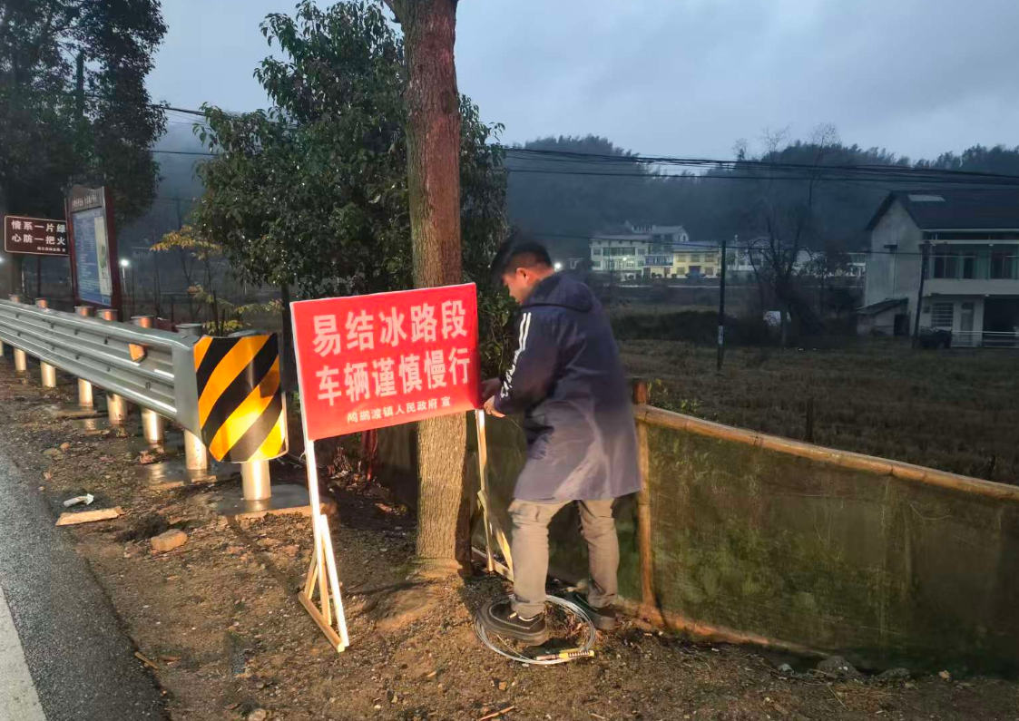 松木塘镇设置道路安全提醒标识、撒盐除冰