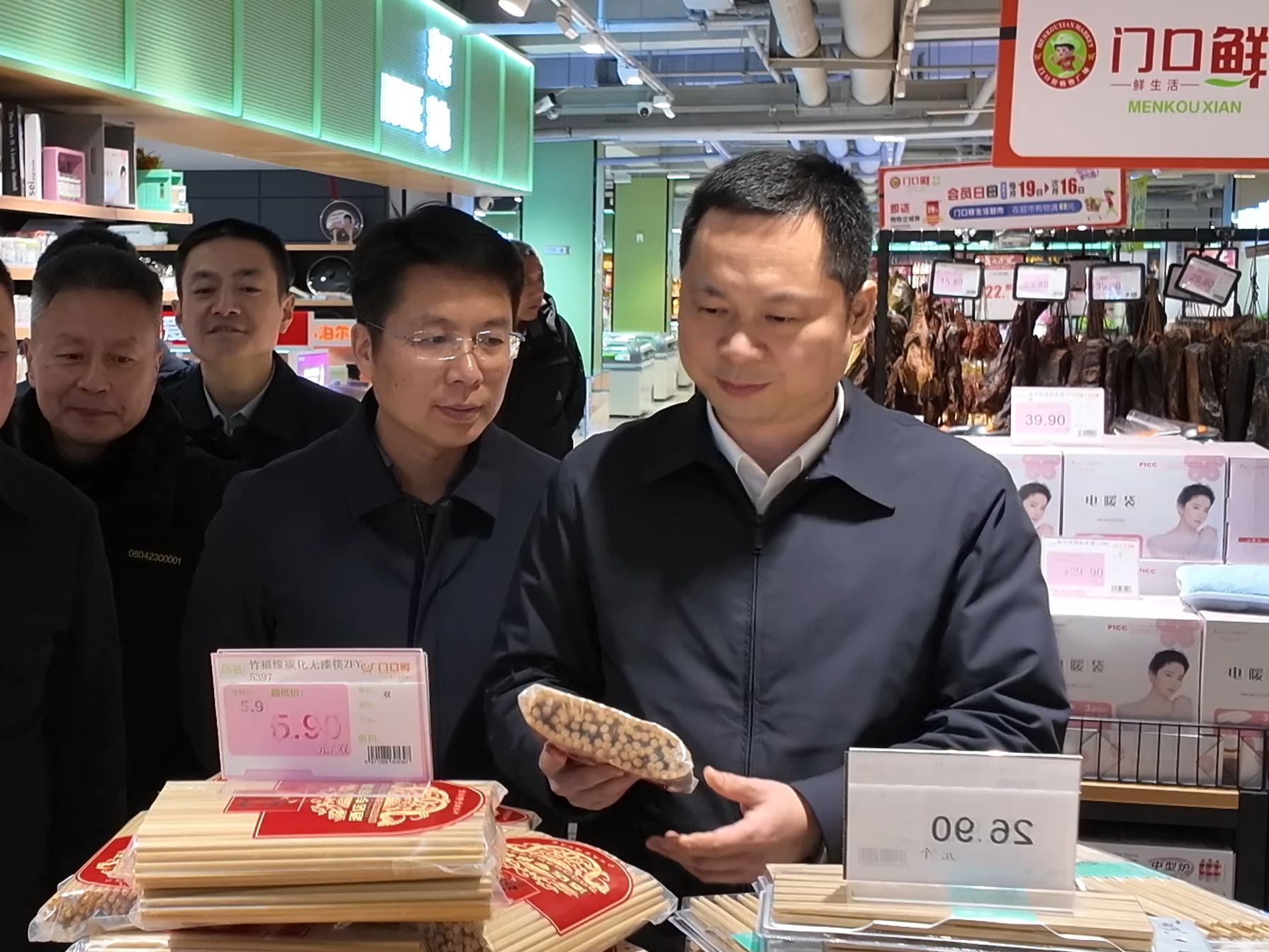 周登高在超市督导检查 莫非易 摄