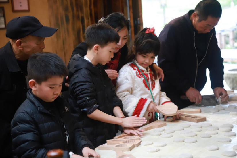 三位加拿大小朋友体验做印子粑粑 罗寒 摄
