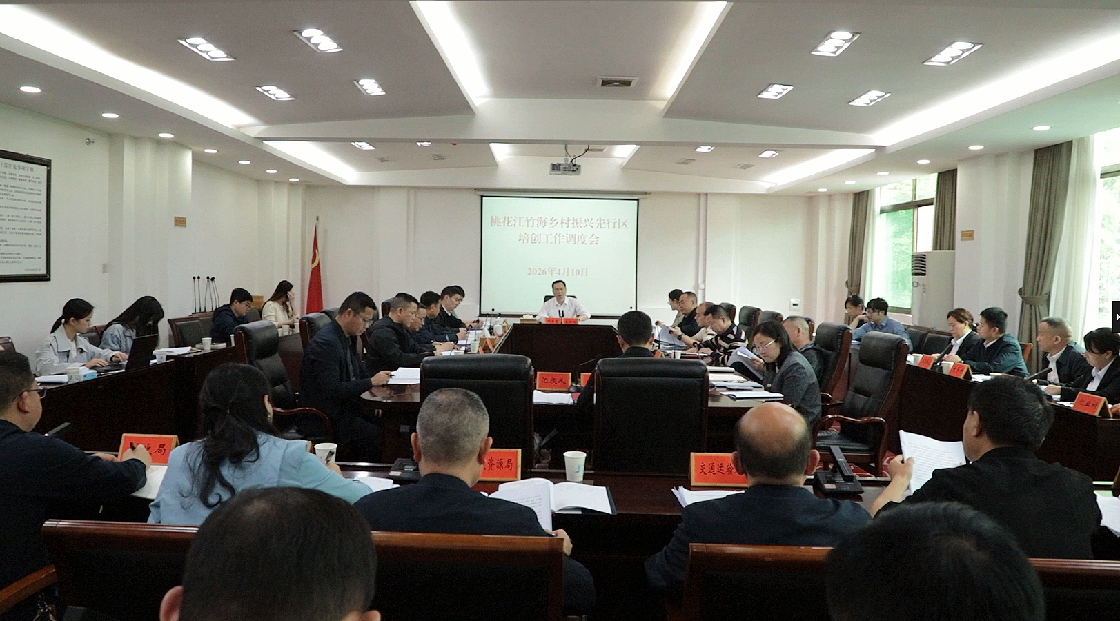 4月10日下午,县委书记周登高主持召开桃花江竹海乡村振兴先行区培创工作调度会。县委副书记、统战部部长王思婷,县领导罗歆辉、林龙飞、刘权、陈哲杰、符赛龙等出席。