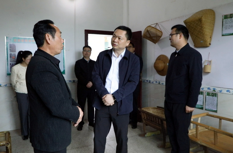在熊家村,周登高通过实地查看、听取相关负责人情况介绍,详细了解该村乡村振兴、基础设施建设及竹产品加工等情况。周登高叮嘱镇村干部要带头干、发动群众一起干,利用当地丰富的竹林资源和特色制蔑手艺,深耕文创产品开发,提升产品附加值,让“小竹子”成为村民增收的“绿色银行”。