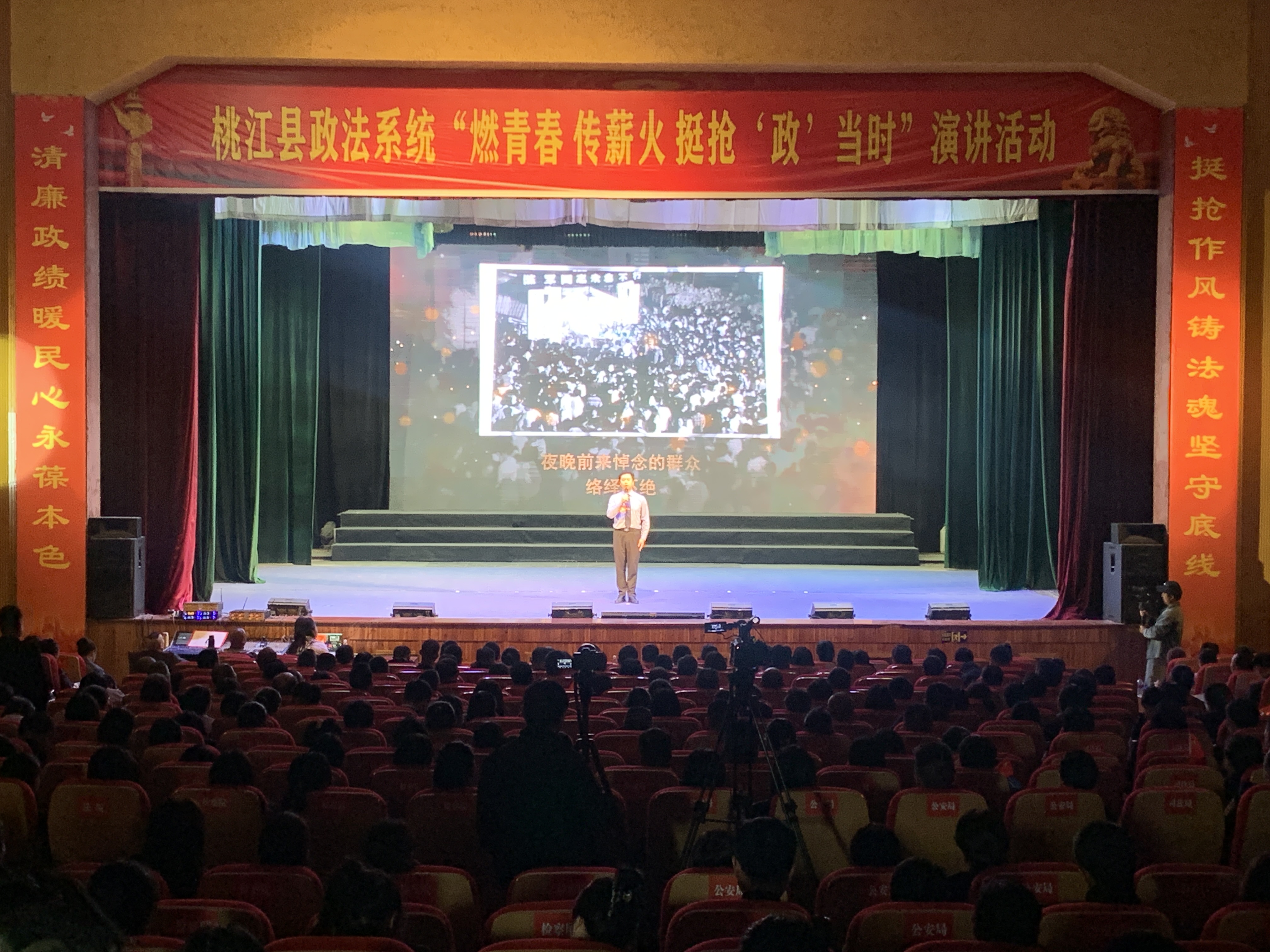 4月23日下午,县政法系统“燃青春 传薪火 挺抢‘政’当时”演讲活动在县影剧院举行。市委政法委政治部主任刘奕芸,县委常委、县委政法委书记罗歆辉,县委常委、县纪委书记、县监委主任曹令其等市县领导出席活动,为获奖选手颁奖。