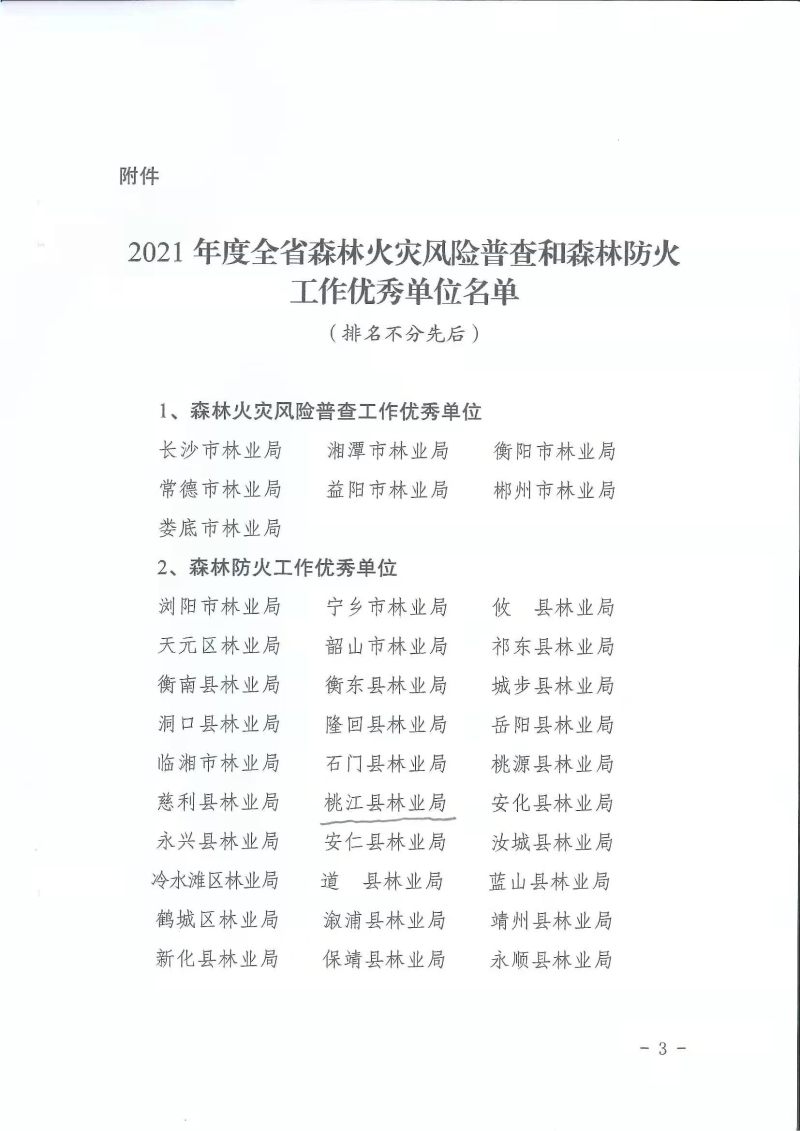 日前,根据《湖南省林业局关于表扬2021年度全省森林火灾风险普查和森林防火工作优秀单位的通报》湘林办防火〔2021〕1号文件精神,县林业局被评为全省森林防火工作优秀单位。
