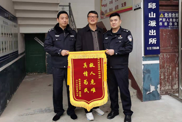 1月11日,居民杨先生专程前往桃江县公安局浮邱山派出所,将一面写有“救人危难,真情为民”的锦旗送到民警手中,感谢民警及时将其母亲送医救治。