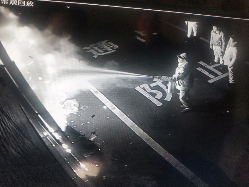 保安曾桂秋使用灭火器灭火(监控画面)