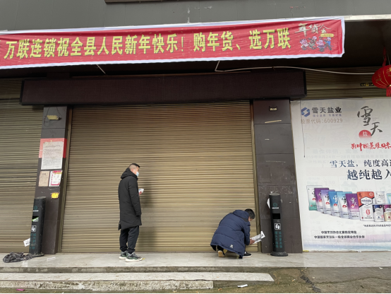 在万联易购水口山店,执法人员发现该超市入口处未安排专人测量体温、查验“三码”,店内从业人员和部分消费者均未按要求佩戴口罩,不符合常态化疫情防控要求,执法人员现场责令该店停业整顿。