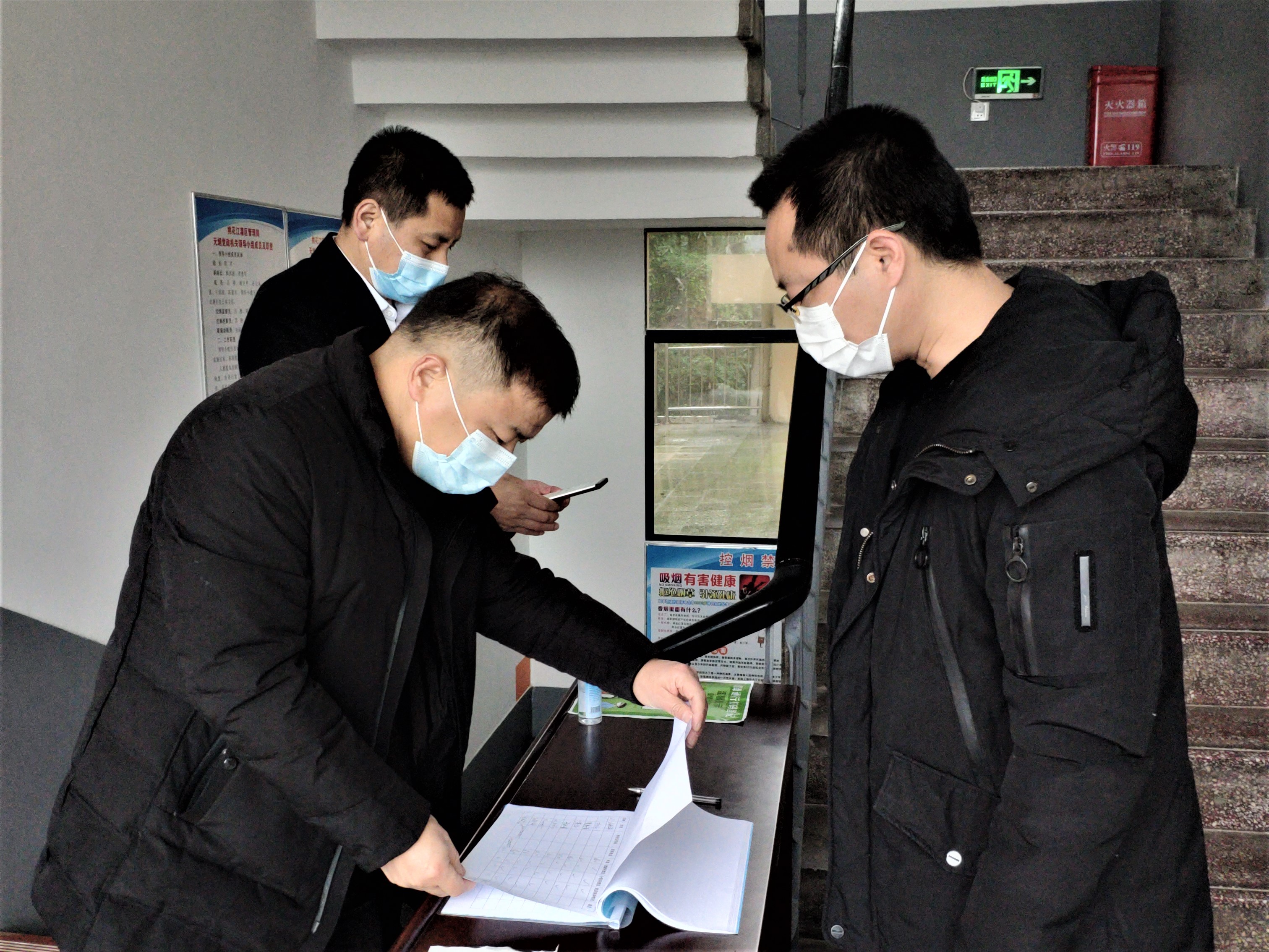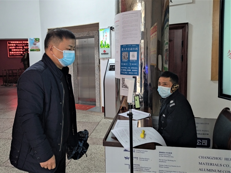 检查三码联查、来访人员信息登记及测体温工作情况 摄影 袁静