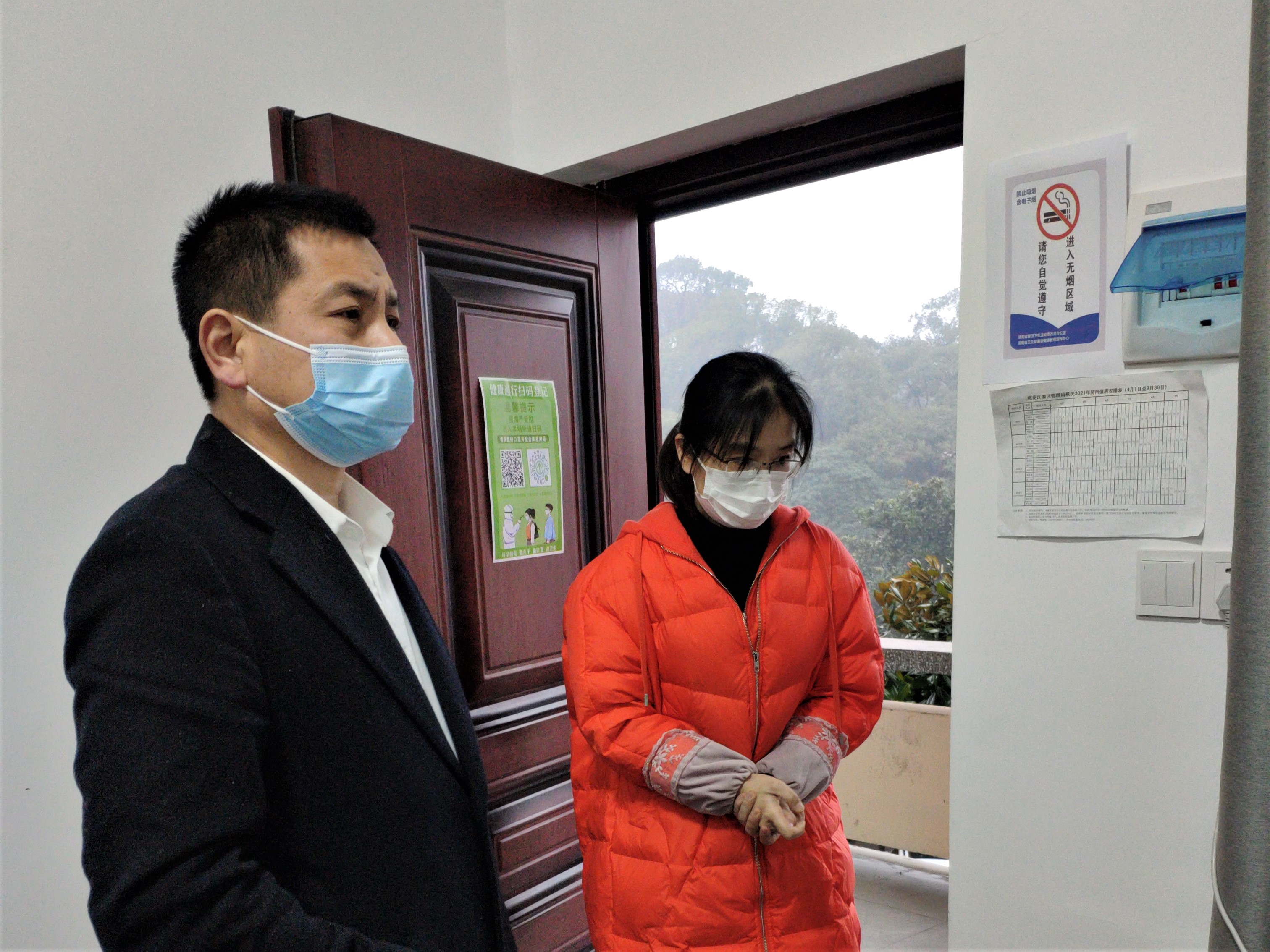 检查办公室上班人员佩戴口罩情况 摄影 刘涛