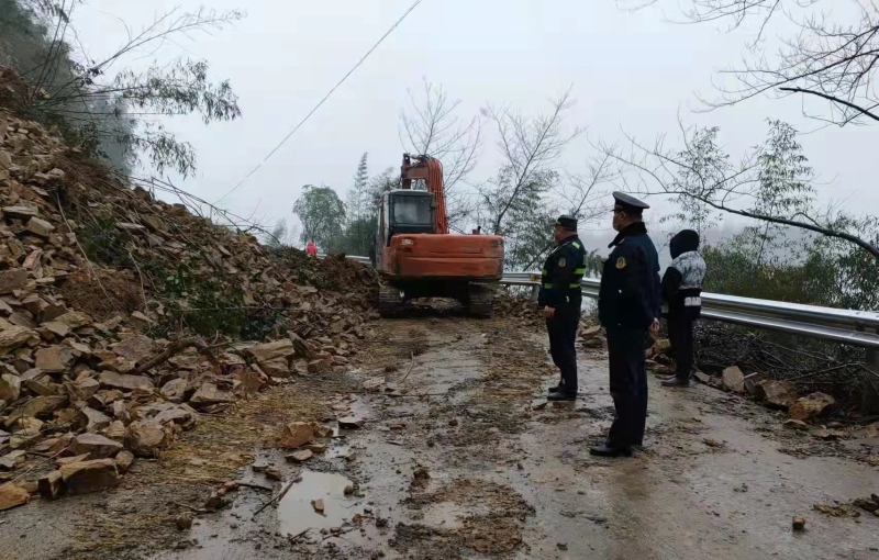 桃江县交通运输综合行政执法大队四中队胡建辉、张先明等执法人员迅速赶赴现场,在事发地两侧设置警示标志,提醒过往车辆行人绕道通行,同时上报县局相关领导。经现场勘验,塌方区域属沾溪镇管辖。经县局领导与当地政府对接,于12时20分调来挖机进行抢修。下午4时15分左右,事发地恢复正常通行。