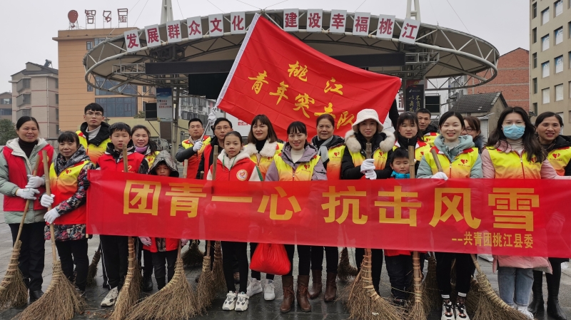 在县城,团县委、县妇联联合资水、蓝天等志愿者协会组织党员、青年志愿者60余人组成突击队,在主干道开展集中铲雪除冰、街道清扫行动。志愿者们拿着扫帚、铁锹、垃圾袋等工具,沿途捡拾白色垃圾、清扫街道、清除卫生死角等。大学生志愿者在蓝天志愿者协会骨干的带领下,连续多天在湘运汽车站开展春运志愿服务,为过往旅客提供口罩、热茶,帮提重物等服务。