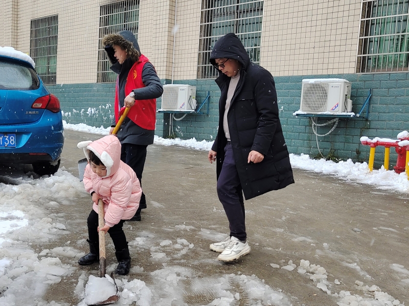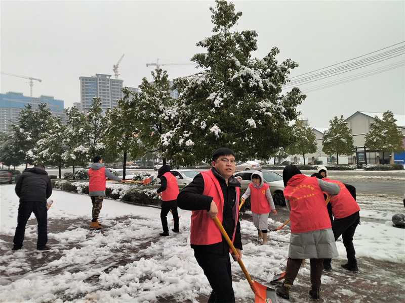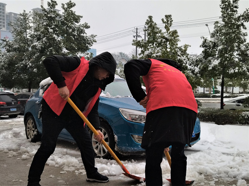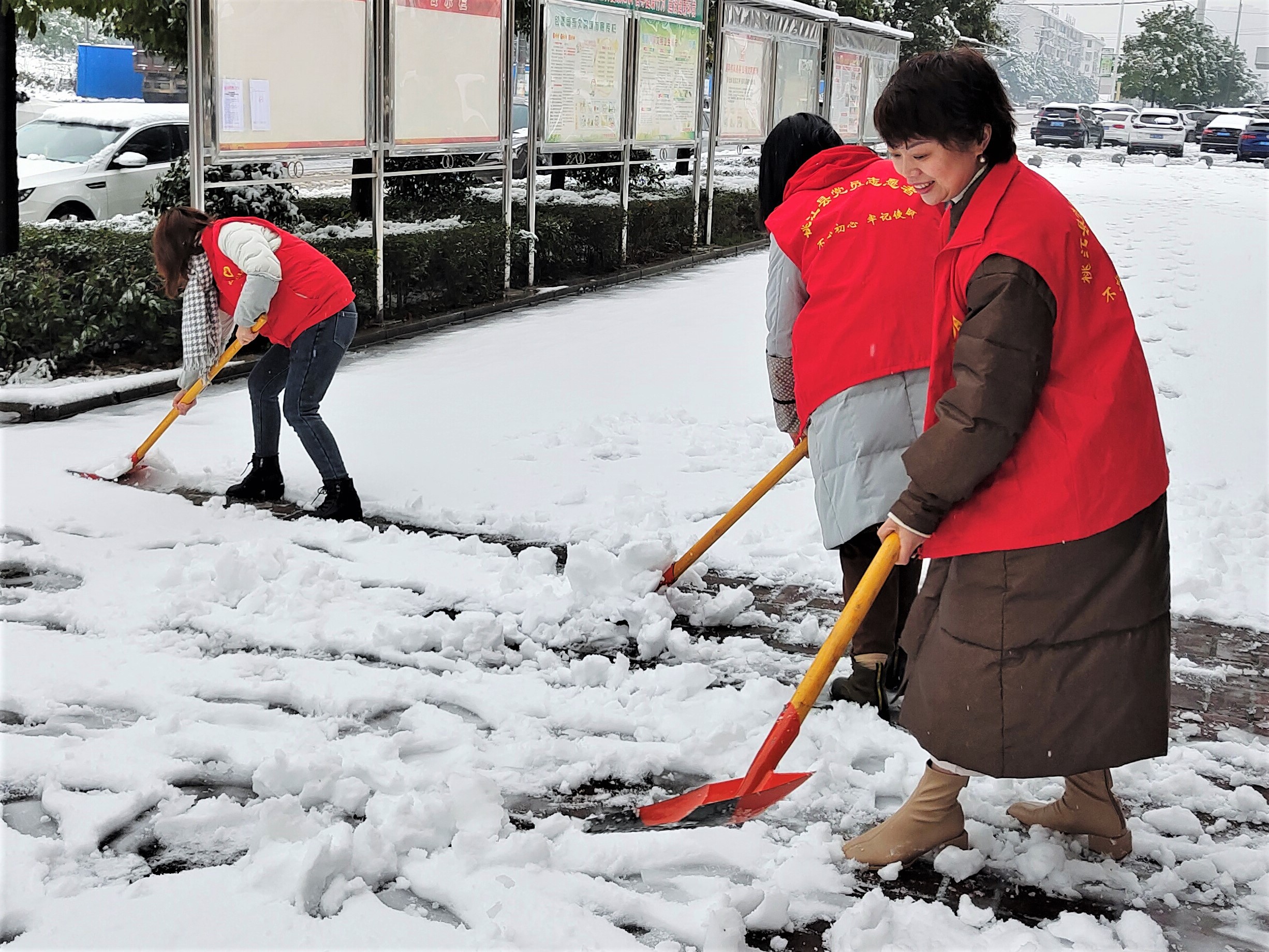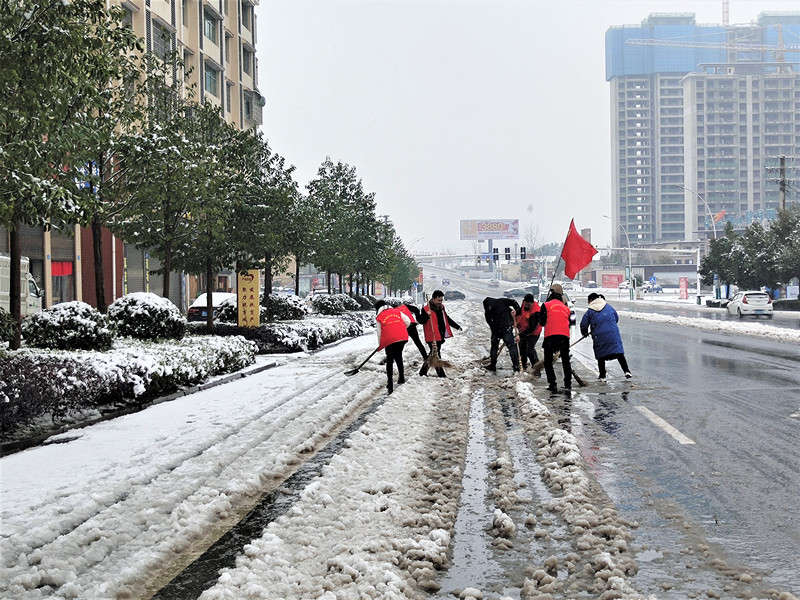 党员志愿者们来到金盆路,立刻投入到铲雪除冰的活动中,一团团跃动的“志愿红”在雪地里格外耀眼。大家铲的铲、扫的扫,干得热火朝天,不一会就把金盆路北段的人行道、消防通道和路面的积雪清除干净了,在此路过的司机、行人都为党员志愿者们竖起了大拇指。