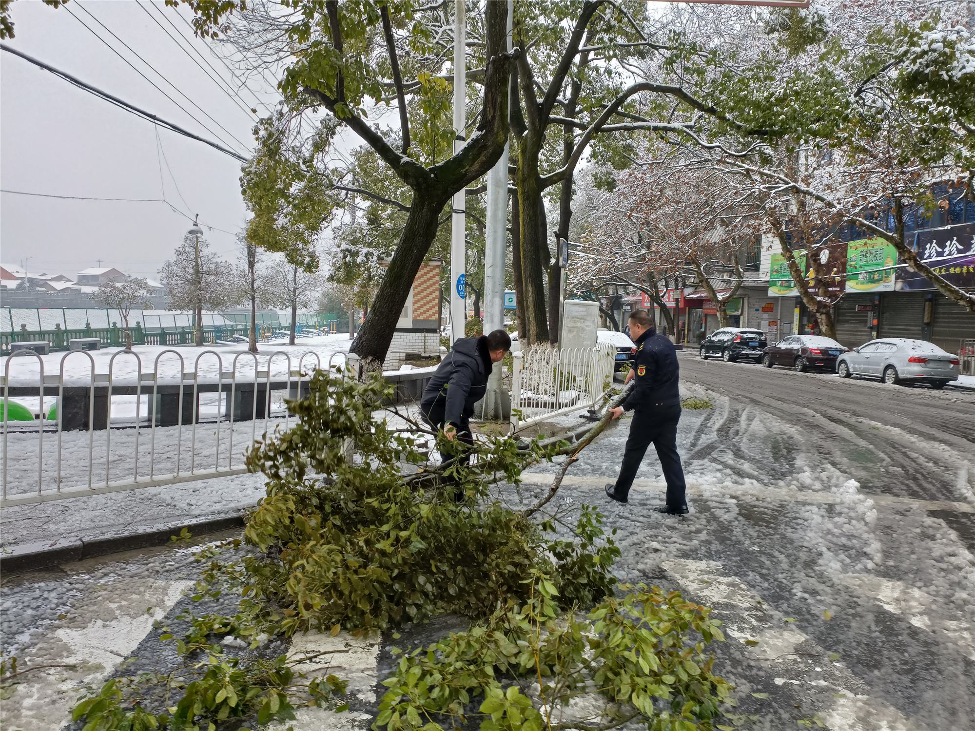 2月7日上班第一天,迎来了农历新年的第一场短时强降雪,县城各街道积雪较厚,大雪将县城街道绿化带部分树木树枝压弯折断,行道树出现损坏倒伏。县城管执法局迅速响应,全员上岗,集中力量,明确责任,全力以赴投入到清雪除冰工作中。