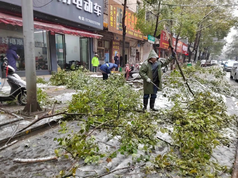 早上7点,县城管执法局市政设施管理站迅速行动,组织人员对倒伏断枝树木进行排查清理及扫雪除雪,截至上午10时,已对树木积雪较重的桃花路、谷山路、建设路、迎宾路、花桥路等主要街道进行树木除雪扫冻,共处理倒伏树木40多株,清理落叶落枝15吨。