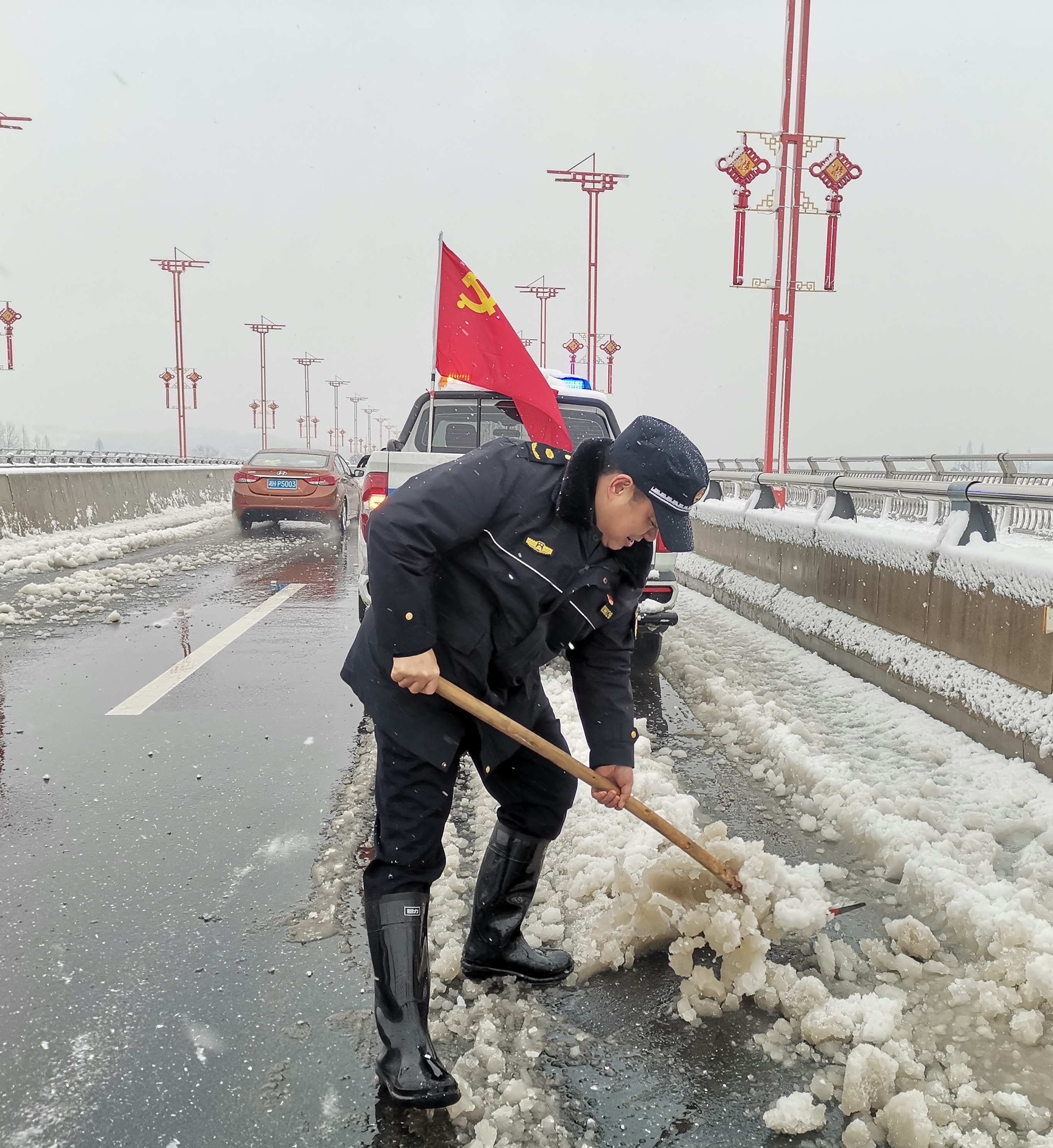 城管系统环卫、路灯、执法大队等单位均迅速投入到除冰保畅通中,在县城8座桥梁设置警示牌,加大城区重点路段的巡查力度,确保市民安全出行。