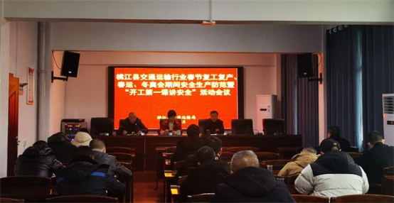 2月8日上午,桃江县交通运输局组织局机关各股室负责人、行业管理机构主要负责人和分管负责人、各执法中队主要负责人、县治超办办公室主任以及各运输企业主要负责人开展“开工第一课讲安全”活动。