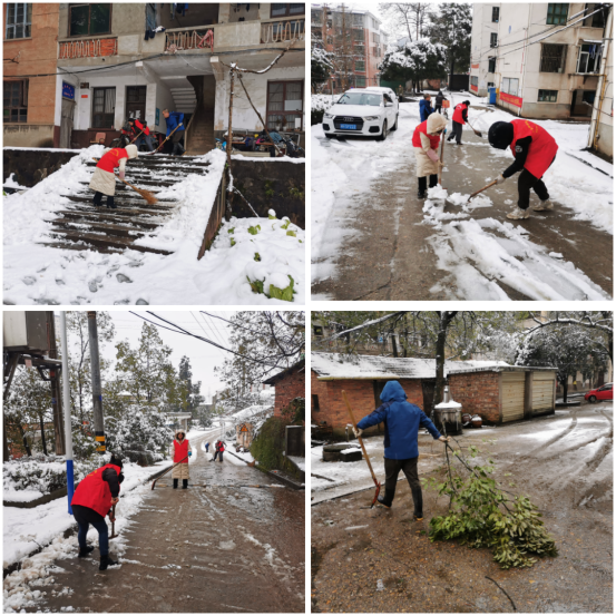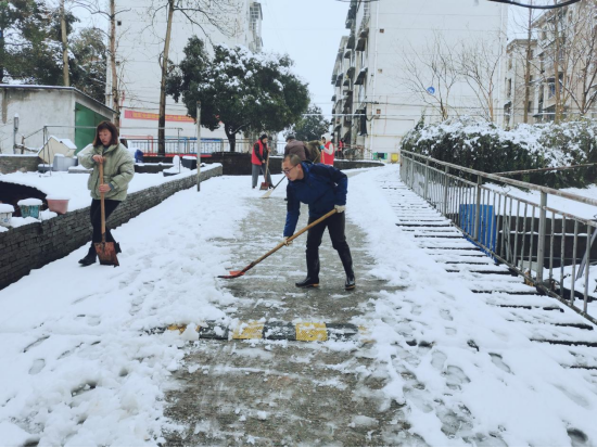 春节节后,桃江县连日普降大雪,桃冶社区闻雪而动,迅速组织全体干职工和老干支委成员到桃冶家属区除雪清障,对小区主要道路出入口和单元门口路面积雪、断枝进行清理,保障居民安全出行。