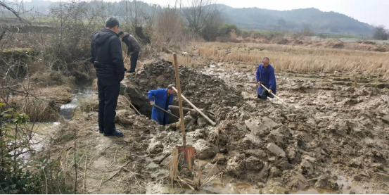 图为灌区渠系清淤与修复现场