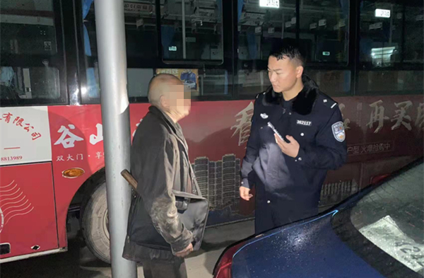 当日17时许,桃江县公安局马迹塘派出所接到热心群众报警,称在马迹塘车站旁边的小巷子里有一名走失老人,请求民警帮助。民警立即赶往现场,发现老人衣服上沾满了泥巴且擦破了几个洞,裤子鞋子也被雨水打湿,冻得浑身直哆嗦。民警上前询问,发现老人神志不清,无法说清楚自己的名字和家庭住址,只是在嘴里不停叨念“没车了,回不去了”。