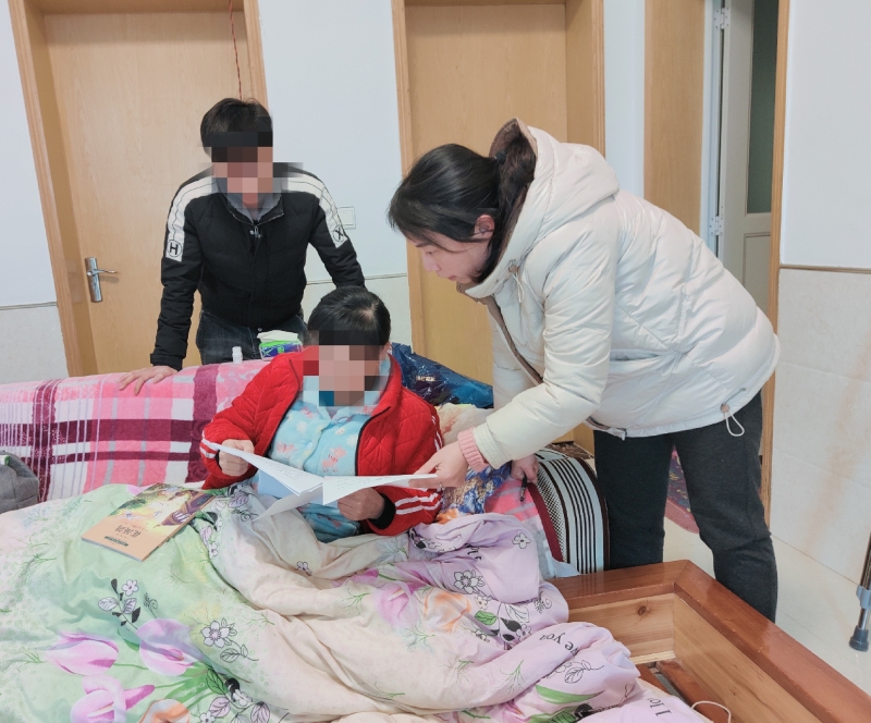 2月22日,一场春雪让室外天寒地冻,而此刻躺在家中的桃花江镇桃谷山村村民文某心头却是暖意融融。