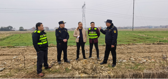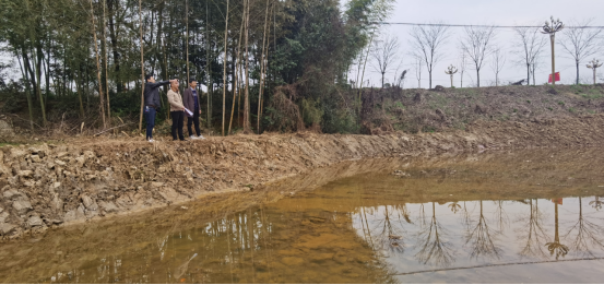 县镇两级自然资源执法队员现场调查占田挖塘(胡卫红 摄)