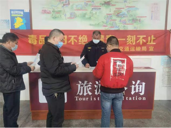 3月7日上午,县交通运输局在湘运桃江汽车站内开展禁毒宣传活动。工作人员充分利用车站人员流动性强、人员集中等特性,采取滚动播出标语、悬挂禁毒横幅、发放宣传资料、现场人员讲解等多种形式,开展有声有色的禁毒宣传。向广大市民积极宣传国家禁毒方针、政策以及毒品对社会、家庭、自身的严重危害,告知市民如何辨别毒品,动员市民积极参与到全民禁毒斗争中来。