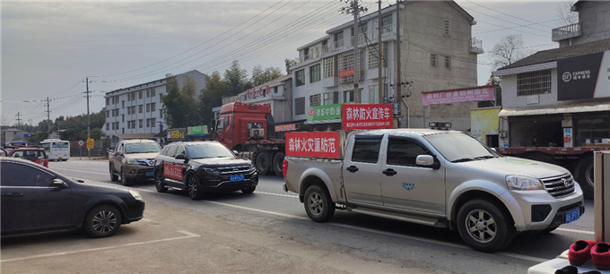 宣传队伍利用宣传车循环播放森林防火宣传音频及森林防火有关法律、法规,在村(社区)、学校及重要路口张贴桃江县人民政府禁火令,在人流量集中的集市发放宣传单,旨在提升公众森林防火的责任意识,增强人人重视、人人参与、人人支持森林防火工作的积极性和主动性,共同织密“防火网”,切实筑牢“安全墙”,全面提升人民群众的森林防火意识,确保驻地重点林区、景区、自然保护区生态安全。