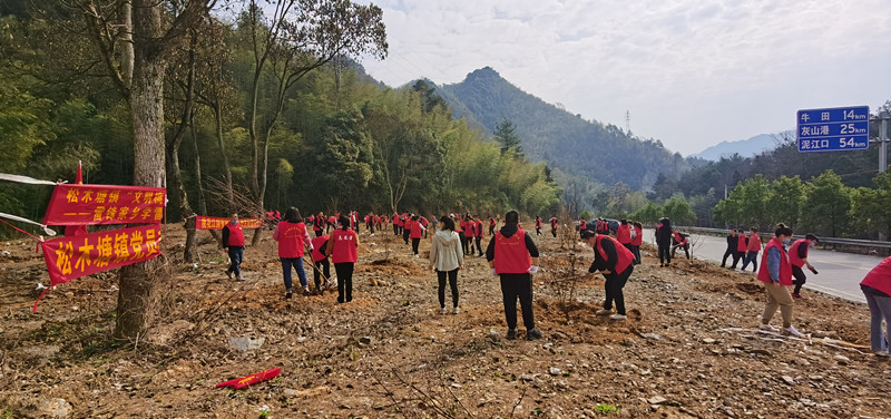 在第44个植树节来临之际,桃江县八个部门单位干部职工联合开展义务植树活动。