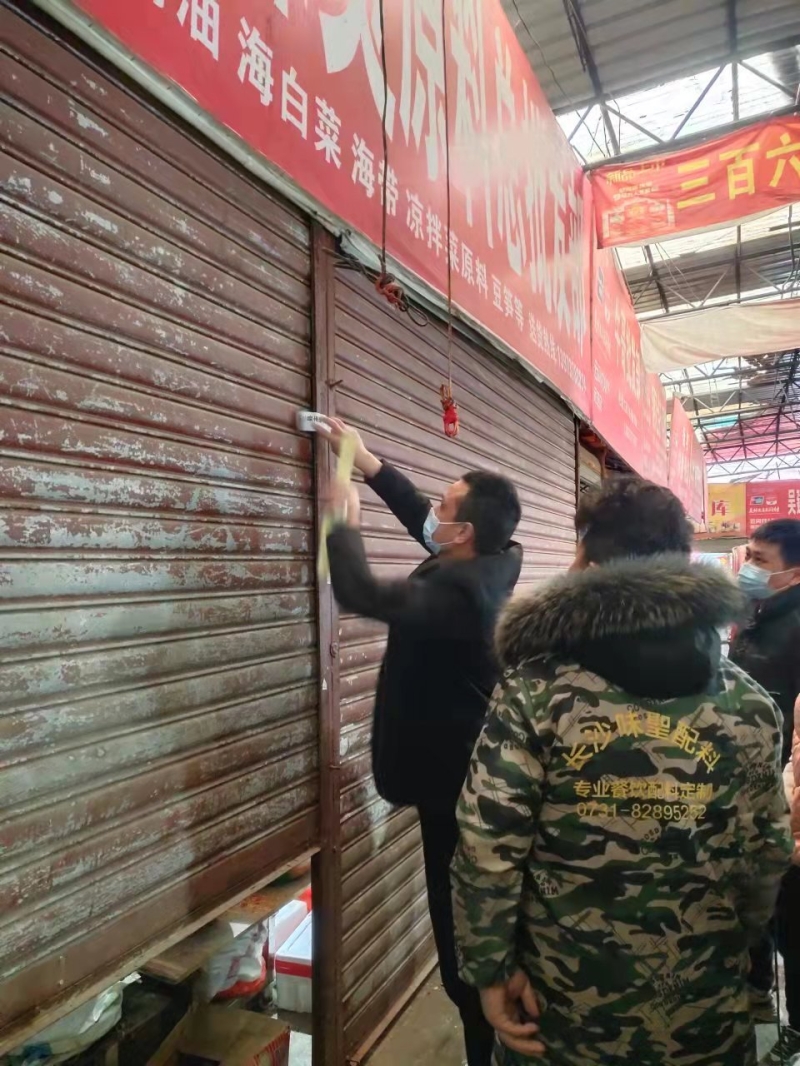 3月21日,县市场监督管理局执法人员在疫情防控督查中发现,位于桃花江镇振华市场的兄弟海鲜批发部、建新海鲜批发部、匡初麻辣烫原料总批发部和桂花园小学附近的欢乐童年超市、晨光文具零食玩具店、思味楼餐饮店、湘缘面食馆等13家经营场所和门店,均存在从业人员未佩戴口罩、未对进出顾客查验“三码”和“场所码”等情况,违反了疫情防控要求,依法责令停业整顿。目前,13家经营场所和门店正在整改之中。
