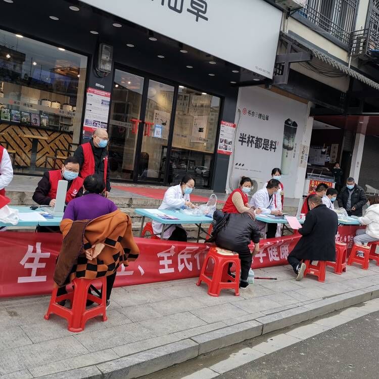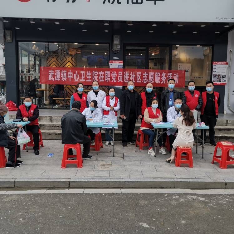 3月23日,武潭镇中心卫生院党支部组织党员志愿者走进该镇武潭社区,开展在职党员进社区活动。活动中,党员志愿者们在武潭社区烧仙草门店前摆摊设点,为过往群众免费测量血压、血糖,并发放疫情防控手册,叮嘱群众戴口罩、及时接种疫苗,做好个人防护。