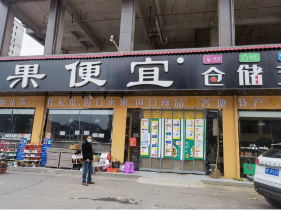 在武潭镇果便宜水果店,执法人员发现该场所未对进入人员测量体温、未要求进入人员扫“场所码”。
