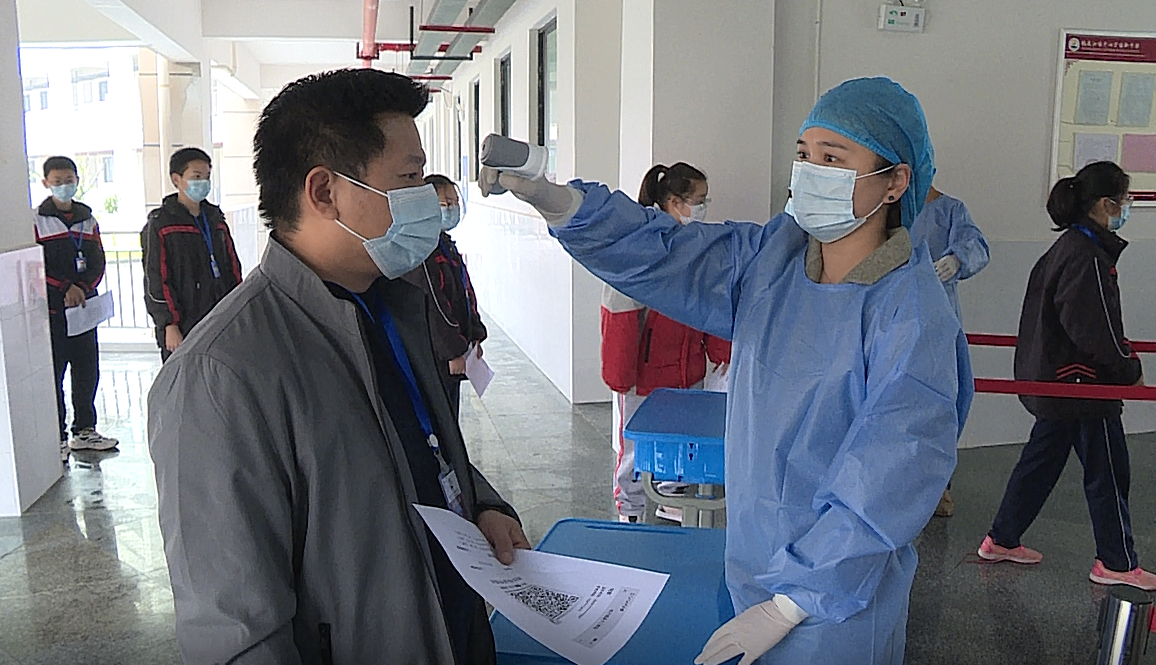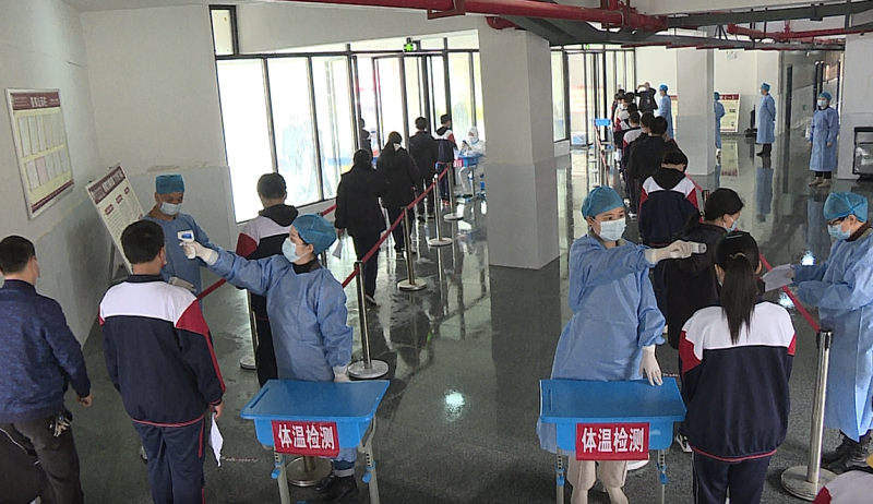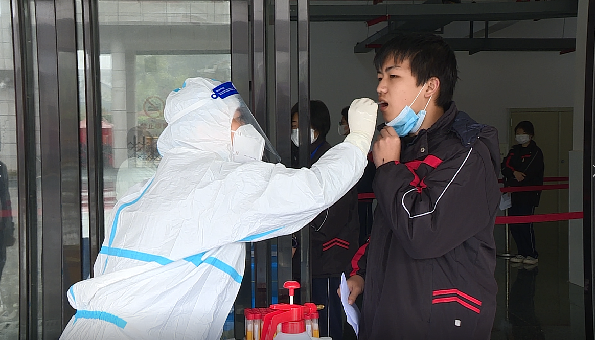演练中,参加核酸检测的200名学生和66名老师在工作人员的引导下,分两组严格按照核酸检测规范流程有序开展体温测量和信息登记,依次前往采样点采样,完成核酸检测后,消杀人员对经过的路径进行了消杀。