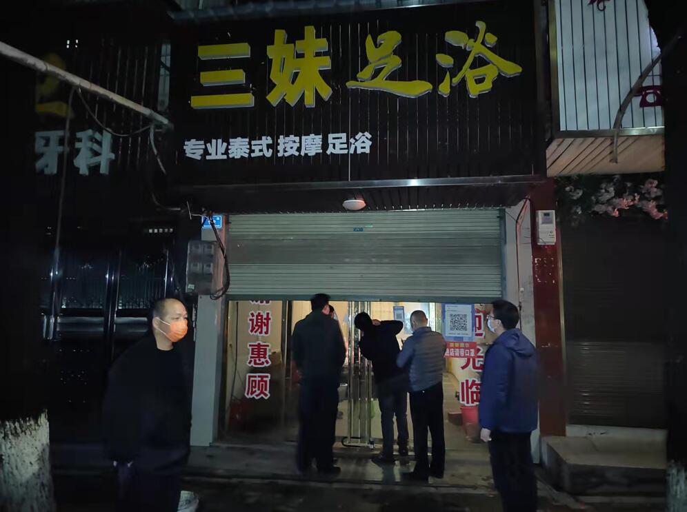 3月31日晚,县卫生健康综合监督执法局联合鸬鹚渡派出所在辖区内开展洗浴场所疫情防控专项检查时发现,三妹足浴、乐康足浴等4家洗浴按摩店,未严格落实县人民政府“关于从严管控聚集性场所和公共场所的通告”的要求暂停营业。工作人员当场对对门店进行了查封,对门店负责人和从业人员进行了训诫。