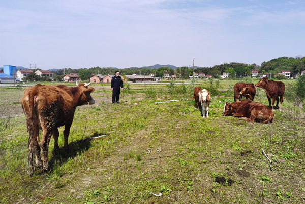 看到自己的牛在田里悠闲地吃草,报警人胡某伟悬着的心终于放了下来,对民警再三表示感谢。
