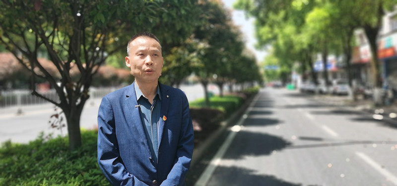 桃花江镇近桃社区党总支书记肖近春接受记者采访
