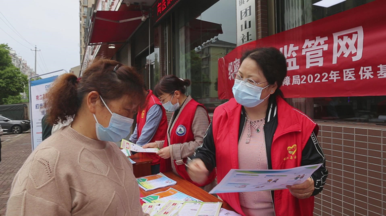 在团山社区服务中心前坪,党员志愿者们积极开展“织密基金监管网,共筑医保防护线”主题医保基金监管集中宣传,向过往群众发放医保政策明白纸和《医疗保障基金使用监督管理条例》明白纸,并现场解读医保政策法规,普及打击欺诈骗保相关常识,公布举报投诉渠道等。