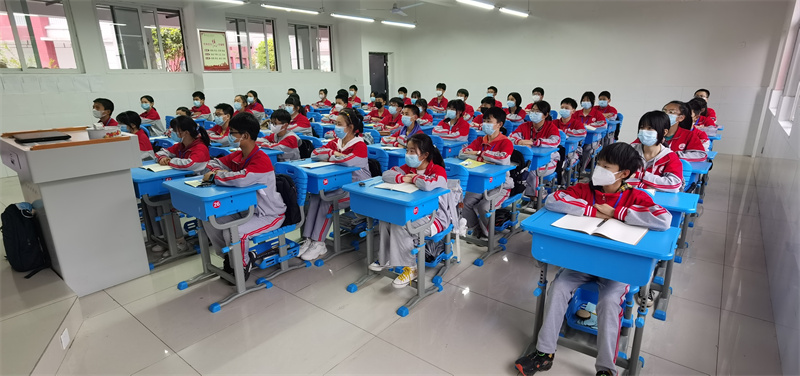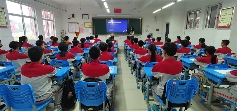 4月14日下午,在桃花江镇中心学校初中部2101班教室,桃江县人民医院生物安全员欧广利正在为同学们讲授生物安全课。她从新冠疫情入手,用大量的事例围绕生物安全的重要性、我国生物安全领域存在哪些风险、如何筑牢生物安全防控屏障、如何应对新发、突发传染病以及疫情防控个人要求等方面进行了解读,给同学们上了一堂深刻的国防安全课。