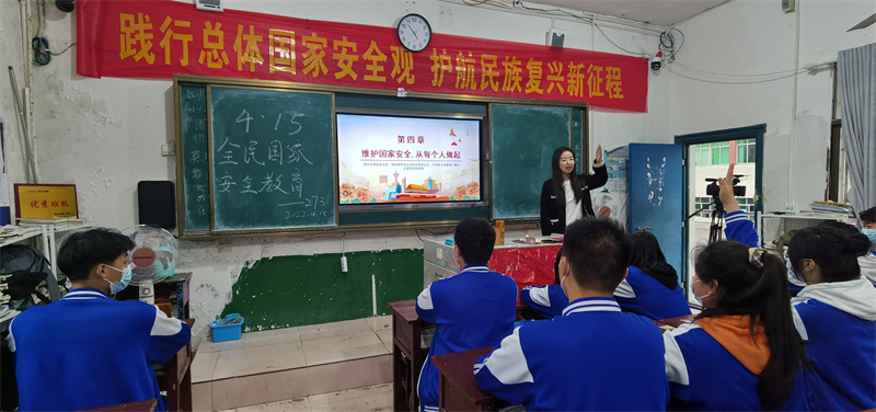 在桃江七中273班教室,班主任老师高世军正在组织同学们举行主题班会,高老师围绕什么是国家安全、破坏国家安全的行为有哪些、怎样维护国家安全等方面与同学们进行互动交流,让大家对国家安全有了重新的认识。“当我们发现周围有可疑人员通过社交手段向我们询问涉及有关国家安全的事情时,我们要第一时间拨打12339,向国家安全机关举报。”273班学生刘成说。
