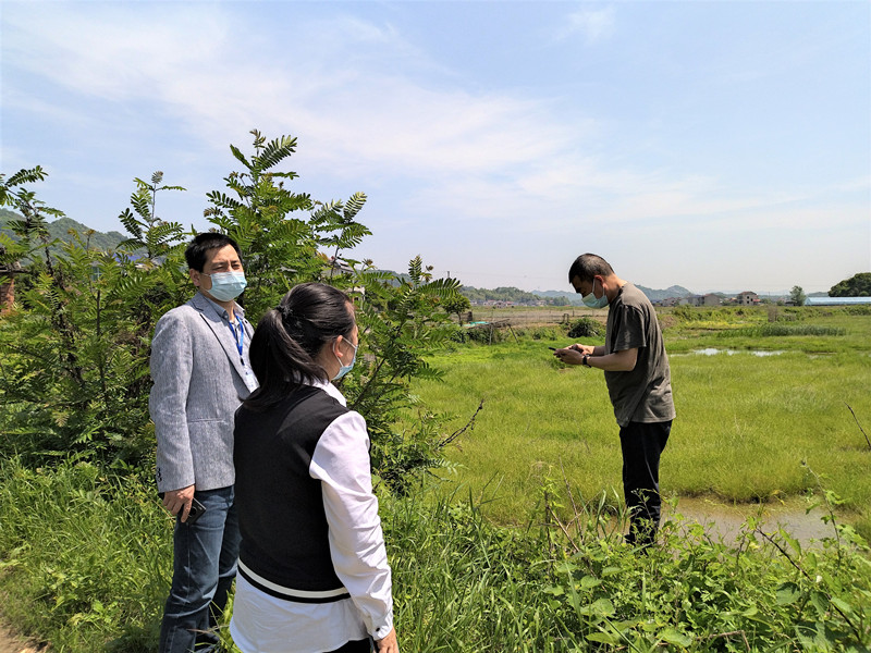 图为春耕生产督查组运用MAP智农软件在测定抛荒面积 摄影 袁静