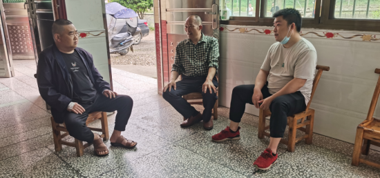 三堂街镇镇村干部上门走访胡建良(左)胡卫红 摄