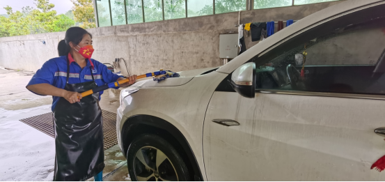 胡建良的妻子周丽花正在洗车 胡卫红 摄