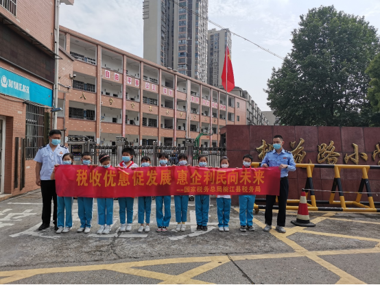 4月26日,县税务局的税法宣传小分队走进桃花路小学,给同学们带来税法知识第一课。