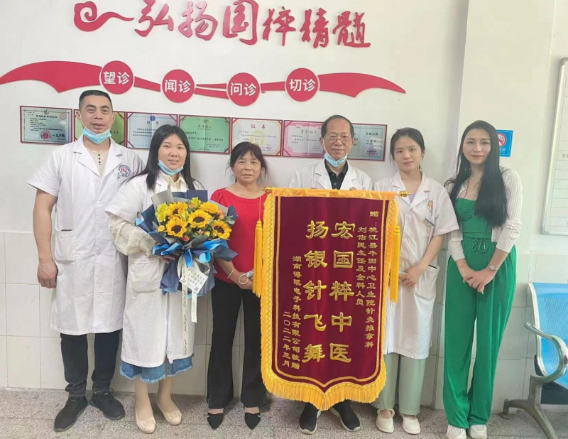 5月4日,患者贺女士将一面印有“弘国粹中医 扬银针飞舞”的锦旗送到了牛田镇中心卫生院针灸科医护人员手中,感谢他们的精心治疗和热心服务。