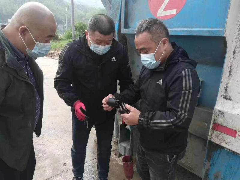 图为工作人员排除清运设备故障