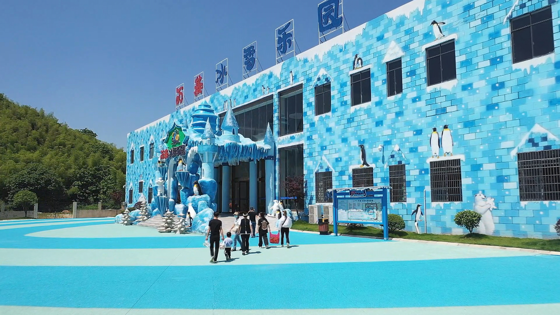 冰雪乐园外,艳阳高照,气温高达30摄氏度,冰雪乐园里白雪皑皑,气温低至零下5度。许多游客趁着五一假期,与家人或朋友来到这里感受冰雪世界的魅力。
