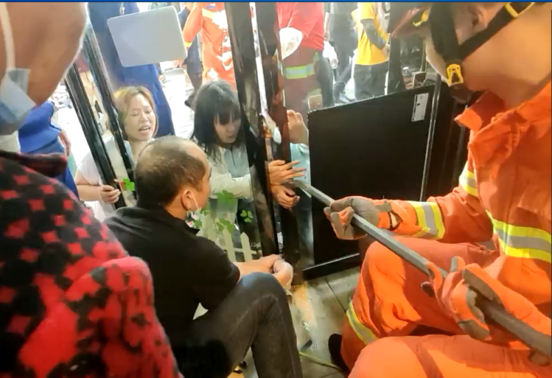 经仔细观察发现:一男孩的整个左手被卡在玻璃门的门缝中,且手指已经肿胀。由于门缝太窄,如果强行使用破拆工具,可能会损坏玻璃门,导致玻璃破碎,对男孩造成二次伤害。现场指挥员决定使用撬棍进行救援,同时对玻璃门进行固定,防止用力不当造成门的损坏对被困儿童和周围人员造成伤害。在消防员的小心操作下,几分钟后,门缝被撬开,成功将小男孩的手救出。