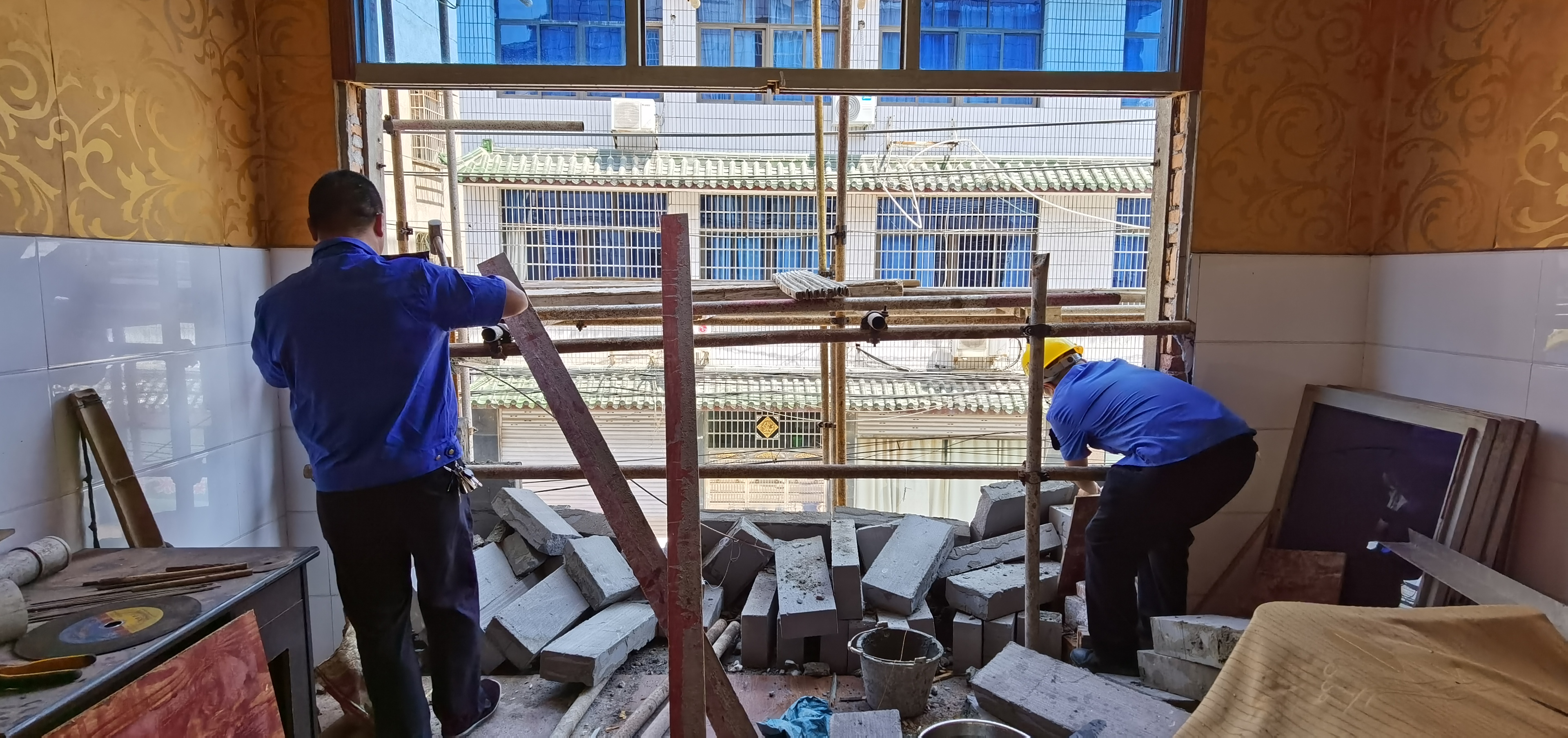 5月6日上午9点,县城市管理综合执法大队接到市民举报称,县城一家五层的私人宾馆正在违法改装、扩建阳台。接到举报后,执法人员立即赶赴现场进行处置。