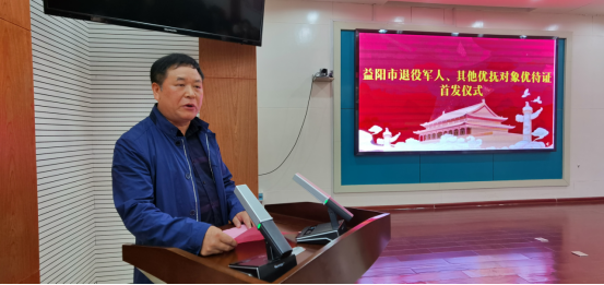 益阳市退伍军人、其他优抚对象优待证“首证颁发”仪式现场(胡卫红 摄)