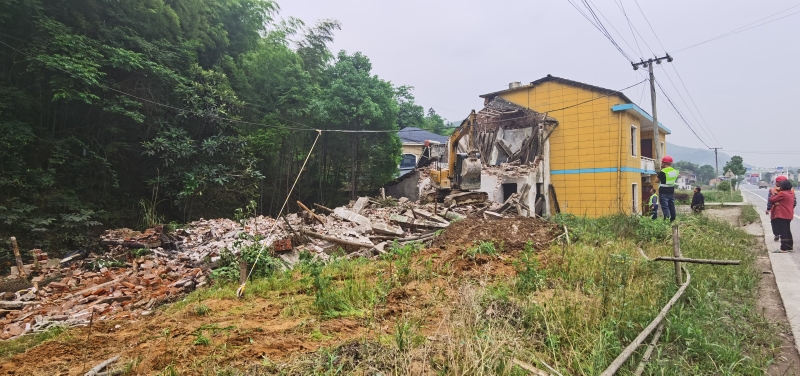 5月18日上午,县公路建设养护中心对近期排查出来的两栋废旧养路工班房进行了拆除。