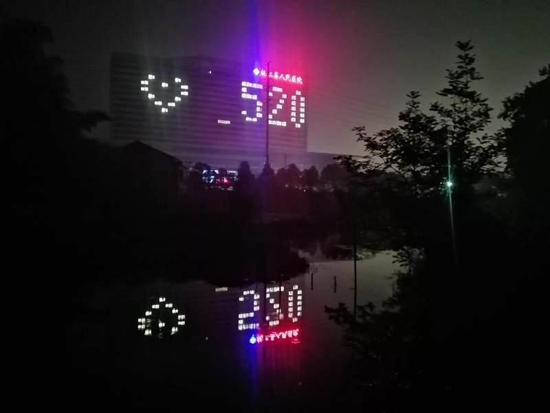 李玉坚说:“今年的‘520’,我们想到利用病房的灯光摆出造型,表达属于桃江人民的浪漫,同时,这里又是一家医院,用这种方式来表达医院是充满爱的地方,为人民的健康保驾护航,唤醒医务工作者的初心和医者仁心,我们企业与医院用良知共同守护生命。”
